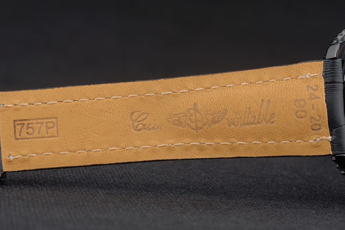 karkötő: Breitling hő domborított fekete krokodil bőr heveder fehér menetes varrással és logó gravírozott ionozott rozsdamentes acél rozsdamentes acél hajtogatás