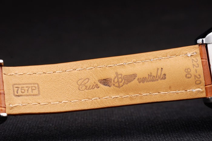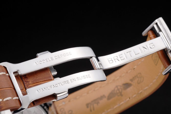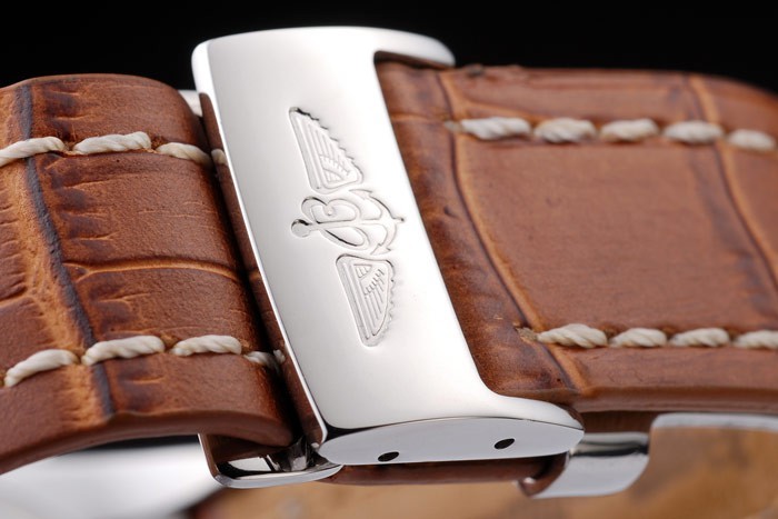 Case: Polírozott rozsdamentes acél tok br> szíj: barna krokodil bőrszíj szabadalmi fehér varrással és hő dombornyomott Breitling metszetek és gravírozott rozsdamentes acél szeres csattal Breitling embléma tetején katalógusa karkötő hossza: 211 x 22 mm katalógusa keret: polírozott rozsdamentes acél keret 3 , 6, 9 és 12 óra sárga arany index markerek és vésett perces jelölések katalógusa sáv Típus: Skin katalógusa átmérő: 53 x 52 mm-es katalógusa Watch csattal: Flip csat katalógusa Üveg: zafír kristály katalógusa Crown : 18k sárga aranyozott rozsdamentes acél vágás korona a breitling logóval és két kisebb koronával mindkét oldalán