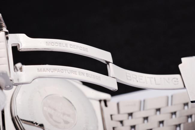 karkötő: szilárd 440 fokozatú rozsdamentes acél zenekar. Minden Breitling Chronomat Watch megjeleníti a gravírozott bepárlási logót, és svájci rozsdamentes acél bélyegeket.