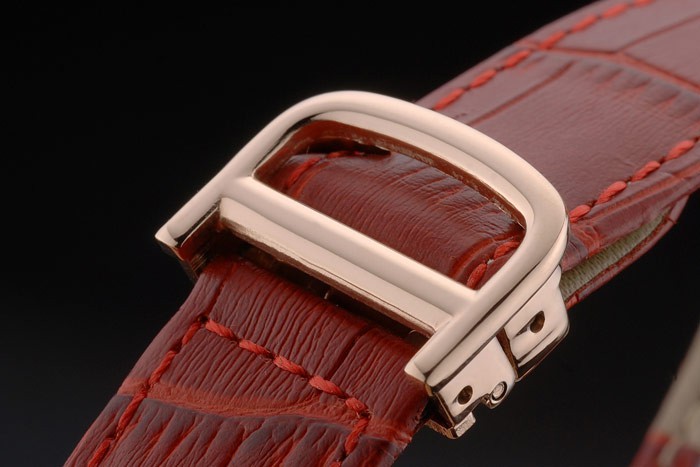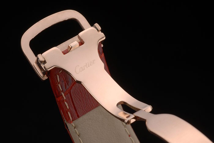 Case: 18k Rose-Gold Plosed Rozsdamentes acél tok – karkötő : Cartier Hőnombolt vörös krokodil bőrszíj 18k-os rózsa-aranyozott hajtogatott kötél csatolással