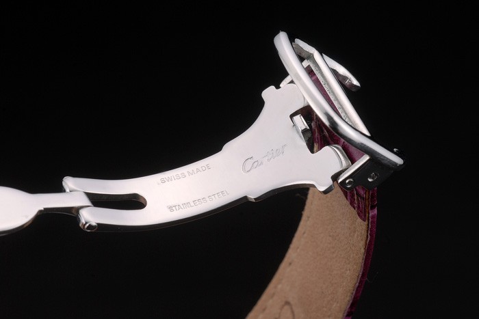 karkötő: Cartier Hő dombornyomott lila Crocodile bőr heveder polírozott rozsdamentes acéllemez-hajtogatott kötlevelű burkolat