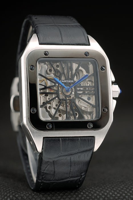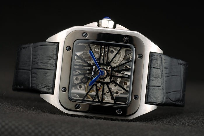 Case: csiszolt rozsdamentes acél tok > szíj: Cartier hő dombornyomott fekete krokodil bőrszíj rozsdamentes acél beépülő csattal nyomógomb kiadás oldalán katalógusa karkötő hossza: 200 x 23 mm katalógusa keret: Ion bevont rozsdamentes acél csavaros előlap