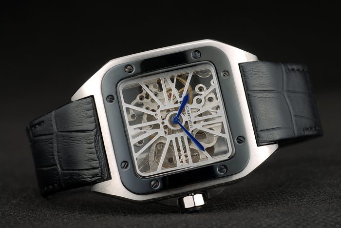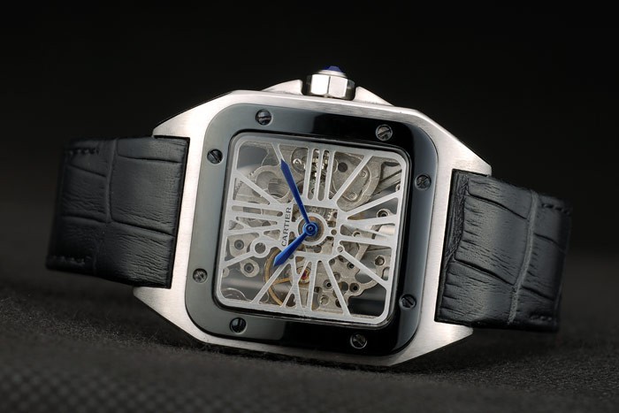 Case: csiszolt rozsdamentes acél tok > szíj: Cartier hő dombornyomott fekete krokodil bőrszíj rozsdamentes acél beépülő csattal nyomógomb kiadás oldalán katalógusa karkötő hossza: 200 x 23 mm katalógusa keret: Ion bevont rozsdamentes acél csavaros előlap