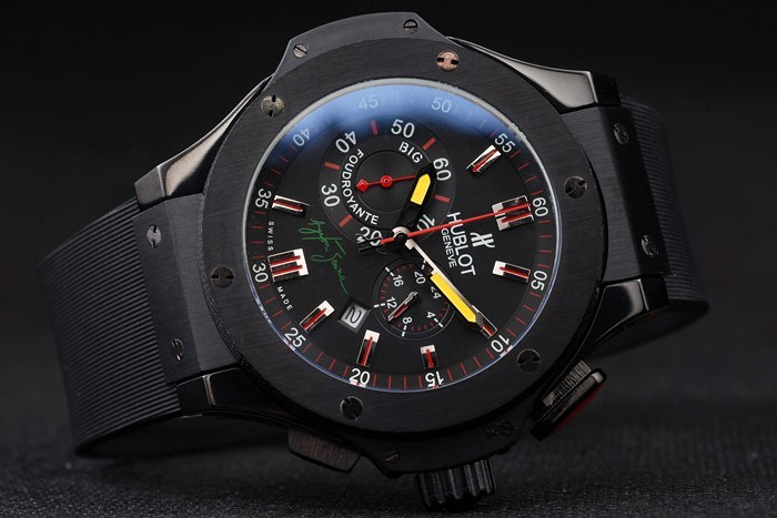 Minőség: japán Miyota katalógusa Szín: fekete-ügy: ion bevonatú rozsdamentes acél tok katalógusa Szíj: Struktúrlemezek fekete gumiszalagot ion bevonatú nyomógombos csattal horog, hő dombornyomott gravírozás és Hublot Ayrton Senna 2009-ben feliratokat katalógusa karkötő hossza : 203 x 25 mm