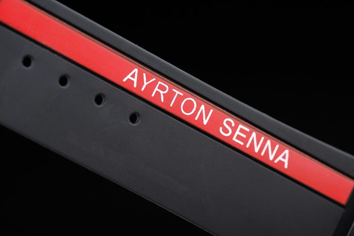 karkötő: texturált fekete gumiszalagot ion-bevonatú nyomógombos horog csattal, hő dombornyomott gravírozás Red Moon és Hublot feliratokat