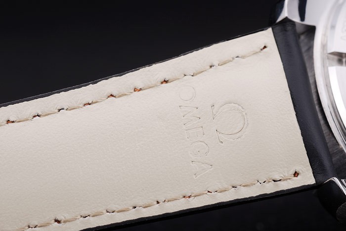 Case: Csiszolt rozsdamentes acél tok br> szíj: Heat dombornyomott Omega név és logó narancssárga varrás fekete bőrszíj Omega logo vésett polírozott rozsdamentes acélból készült szétnyitható flip kapocs katalógusa karkötő hossza: 210 x 22 mm katalógusa Keret: fekete zománc polírozott rozsdamentes acél cutwork korona perc markerek
