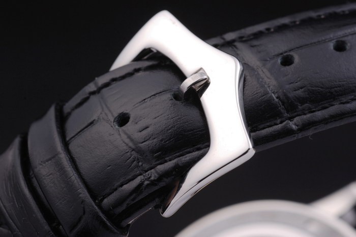 karkötő: fekete bőrszíj Patek Philippe bélyegzővel és rozsdamentes acél horogcsatlakozóval