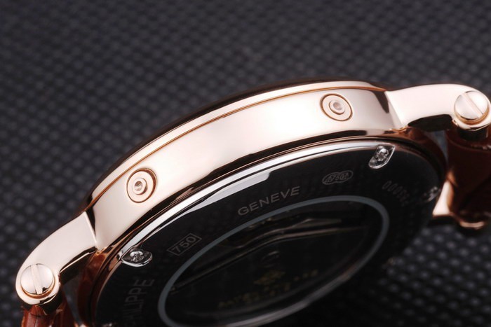 karkötő: barna bőr heveder patek philippe bélyegző és egy rózsa arany hajtás a clasp