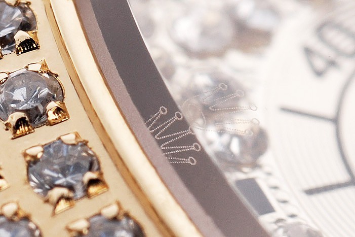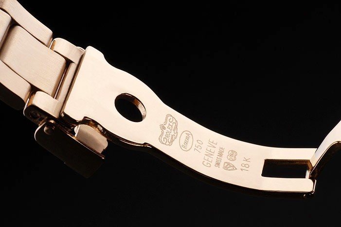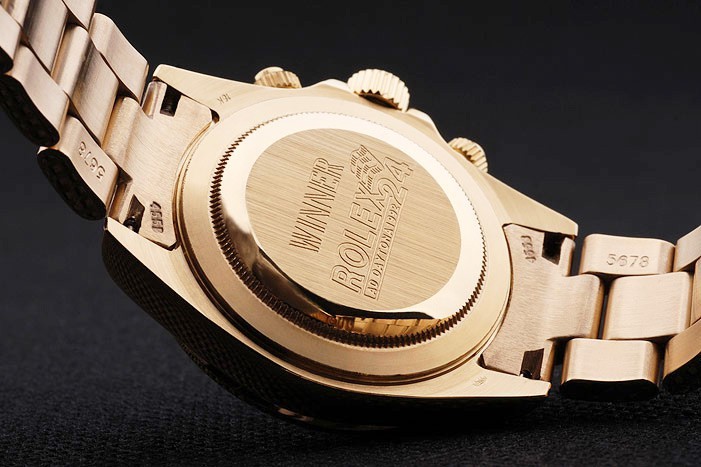 Vissza: Arany-tónusú rozsdamentes acél Push-in Case Vissza a Rolex gravírozással