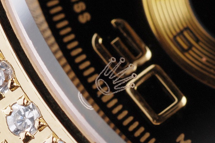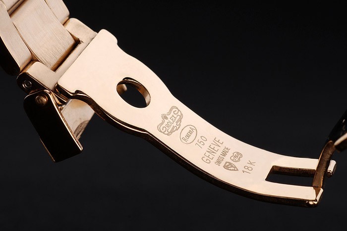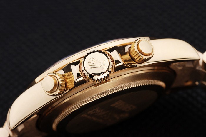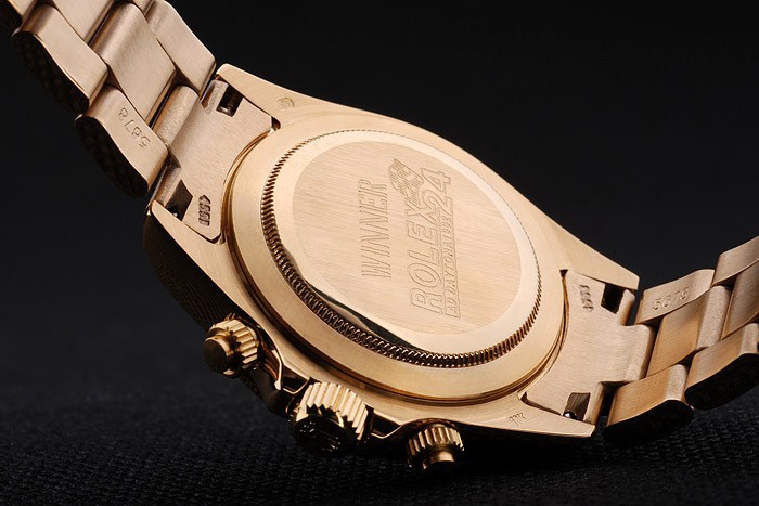 Vissza: Arany-tónusú rozsdamentes acél Push-in Case Vissza a Rolex gravírozással