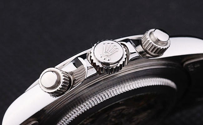zenekar típusa: Rozsdamentes acél < br> Átmérő: 48 x 40 mm-es katalógusa Watch Kapcsos: Biztonsági csat katalógusa Üveg: zafír kristály katalógusa korona: polírozott rozsdamentes acél cutwork korona Rolex logó és két további korona két oldalán azt katalógusa Case vastagság : 13 mm