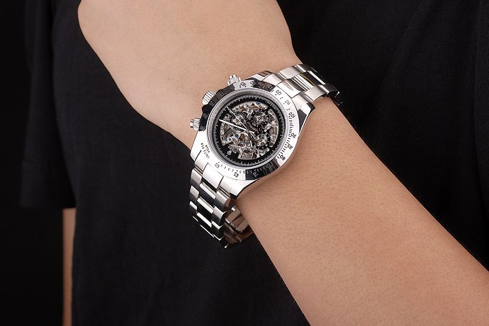 Case: polírozott rozsdamentes acél tok – karkötő : Csiszolt és polírozott rozsdamentes acél link karkötő a Rolex gravírozás kirakósodásával A Rolex logó bemutatása