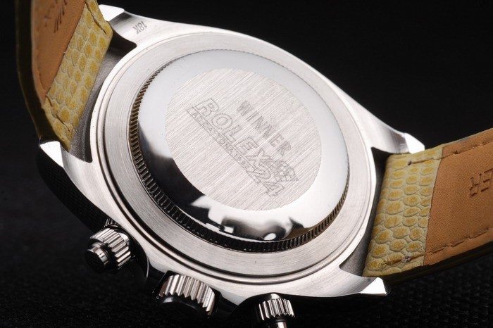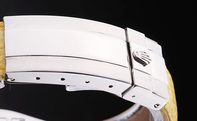 Case: polírozott rozsdamentes acél tok < br> szíj: Sárga kígyó bőrszíj Rolex és a logó gravírozás és rozsdamentes acél telepítési csattal megjelenítésére Rolex logo katalógusa karkötő hossza: 180 x 20 mm katalógusa keret: polírozott rozsdamentes acél lünetta egység óránként mutató katalógusa Fejpánt : Bőr átmérő: 48 x 40 mm