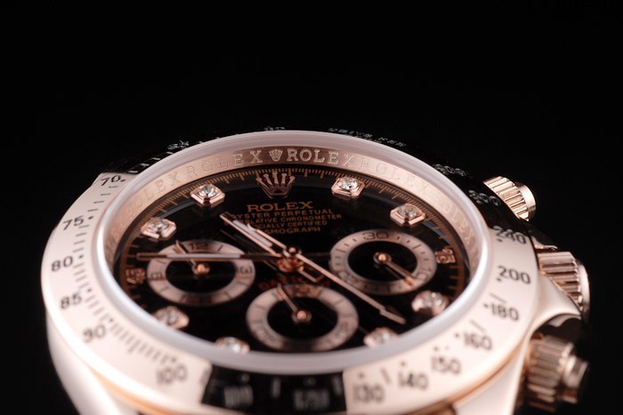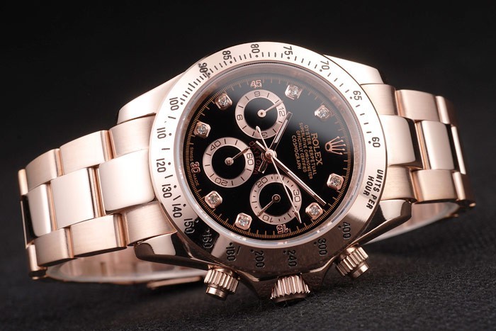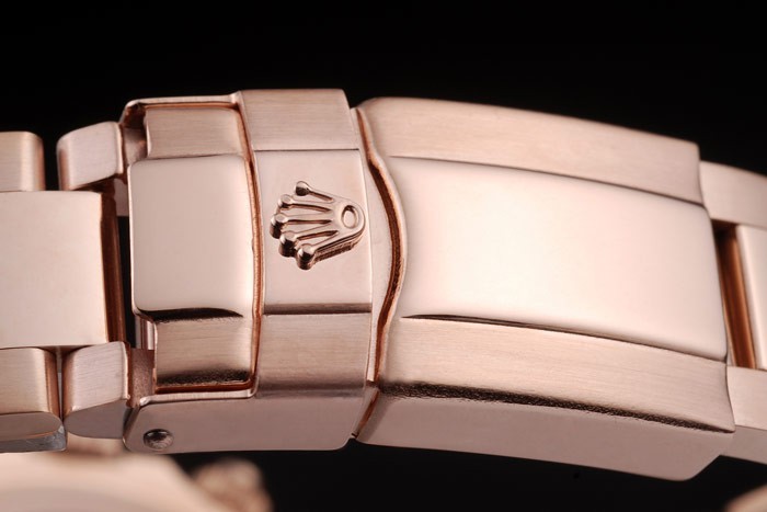 Case: 18k Rose -gold bevonatú esetben katalógusa Szíj: 18k rózsa arannyal bevont rozsdamentes acél link karkötő Rolex vésett Föld- a telepítési csattal megjelenítő Rolex logo katalógusa karkötő hossza: 190 x 20 mm katalógusa keret: 18k rózsa arany keret A fekete egységek órákban marker