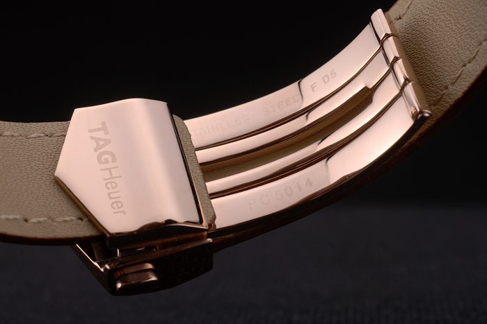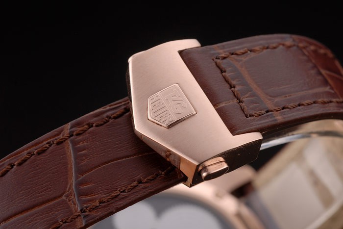 Karkötő: hő domborított címke Heuer barna krokodil bőr heveder 18k rózsa-arany bevonatú hajtogatással push release funkcióval